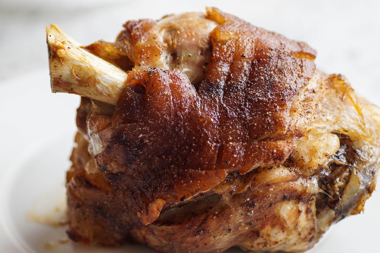 DonnerstagGrillhaxe mit Weißkrautsalat und Brot